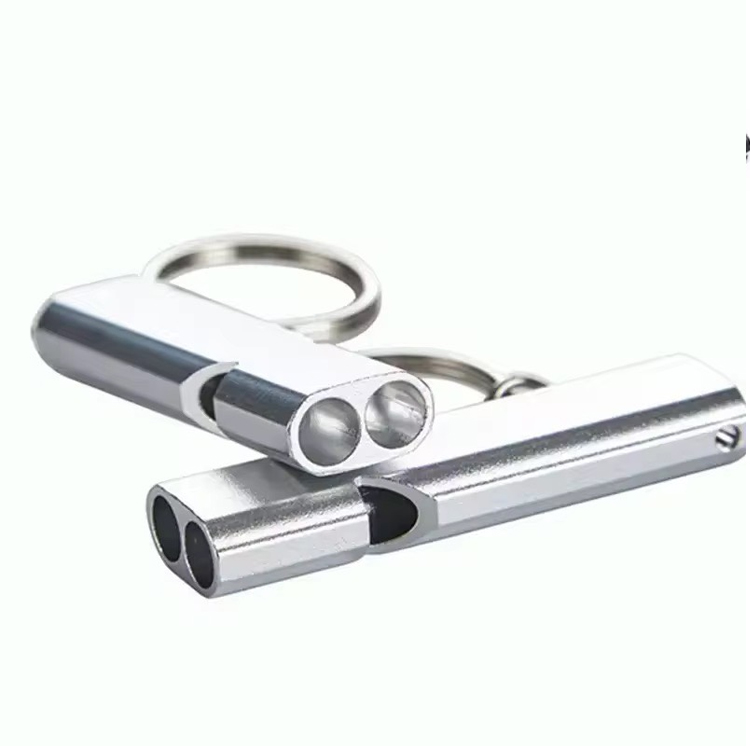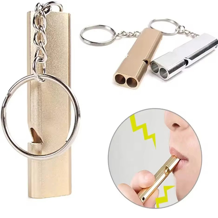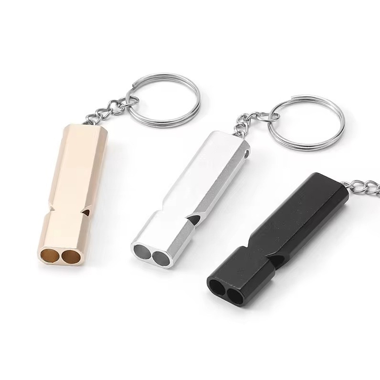 صافرة بقاء من الألومنيوم سلسلة مفاتيح أمان محمولة بأنبوب مزدوج