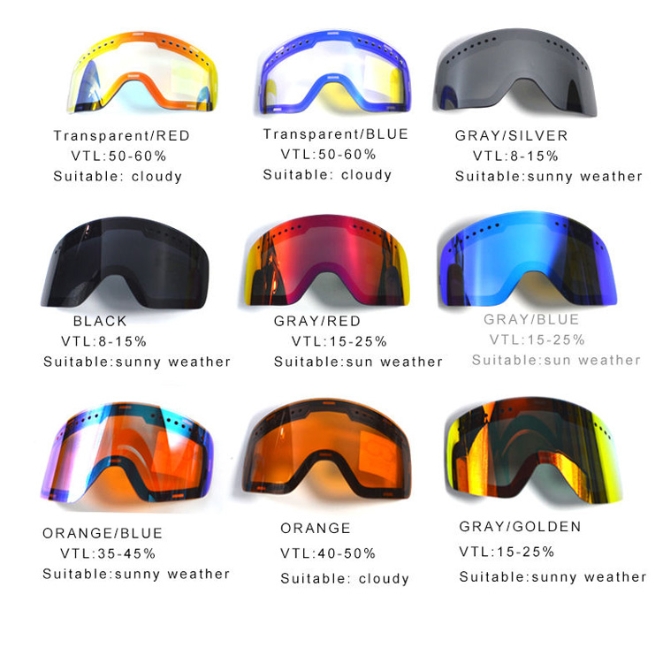 مكافحة الضباب مخصص الأشعة فوق البنفسجية المغناطيسي 400 نظارات التزلج على الجليد الأنيقة. الحل الممتاز بالجملة للرياضات الشتوية المهنية. تتميز نظارات التزلج هذه بعدسات عاكسة مضادة للضباب مع حماية مغناطيسية مخصصة من الأشعة فوق البنفسجية 400. يضمن التصميم الأنيق ذو الطبقة المزدوجة وضوحًا وراحة لا مثيل لهما لجميع مغامرات التزلج على الجليد.