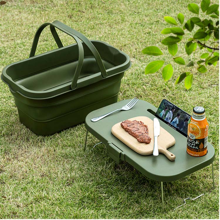 تتحول هذه السلة المبتكرة من حاوية تخزين عميقة إلى سطح طاولة مسطح وثابت في ثوانٍ، مما يوفر مساحة تخزين منظمة ومنصة مريحة لتقديم الطعام/تناول الطعام للأنشطة الخارجية.