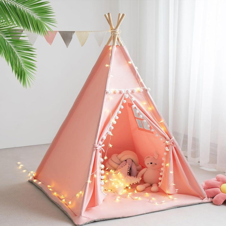 خيمة تيبي للأطفال من القماش القطني للأطفال مع حصيرة
