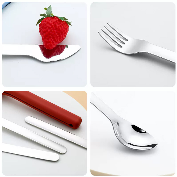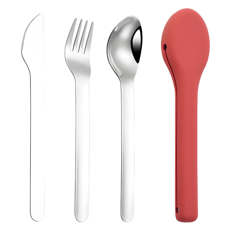 تتضمن أدوات المائدة الأساسية: شوكة العشاء، وسكين الطاولة، وملعقة الشوربة، وملعقة صغيرة، وعيدان تناول الطعام القابلة لإعادة الاستخدام - كل ما تحتاجه لتناول وجبة كاملة أثناء الأنشطة الخارجية أو السفر.