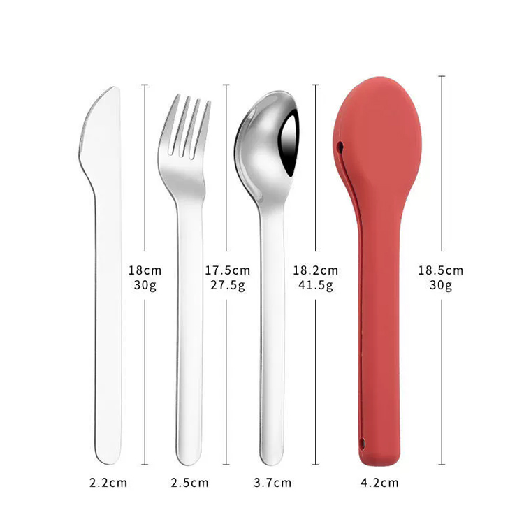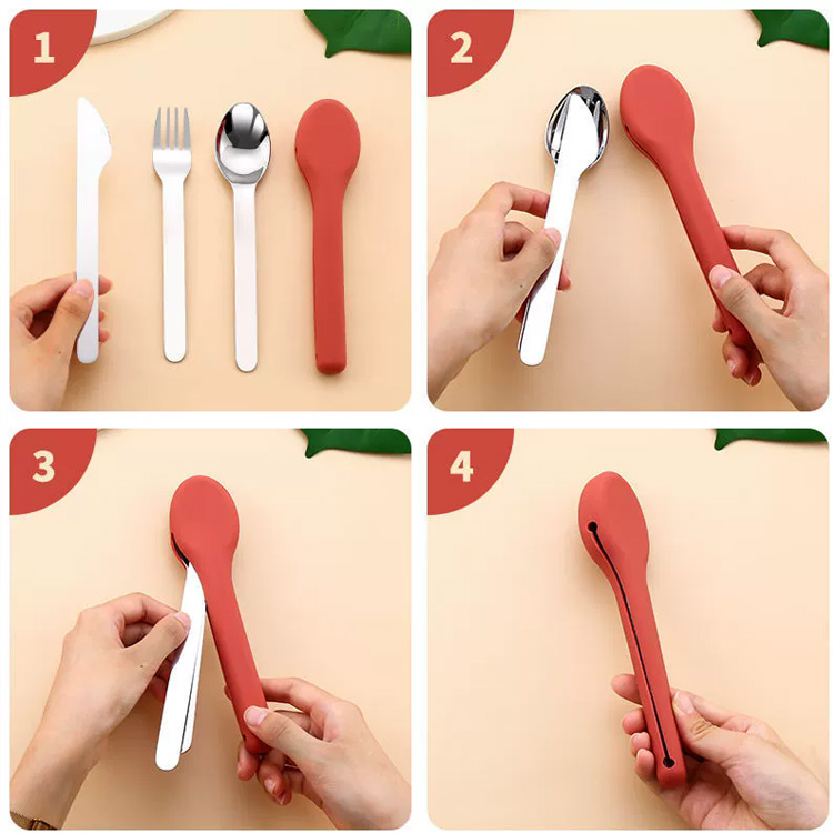 مجموعة أدوات مائدة للتخييم والسفر عالية الجودة مصنوعة من السيليكون. رفيقك المفضل لتناول الطعام للمغامرات الخارجية. تتميز مجموعة أدوات المائدة عالية الجودة هذه بأدوات مائدة متينة من الفولاذ المقاوم للصدأ في علبة واقية من السيليكون. مثالي للتخييم والسفر والنزهات، فهو يضمن تناول طعام أنيق وصحي في أي مكان.