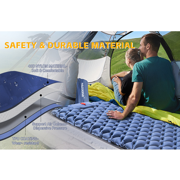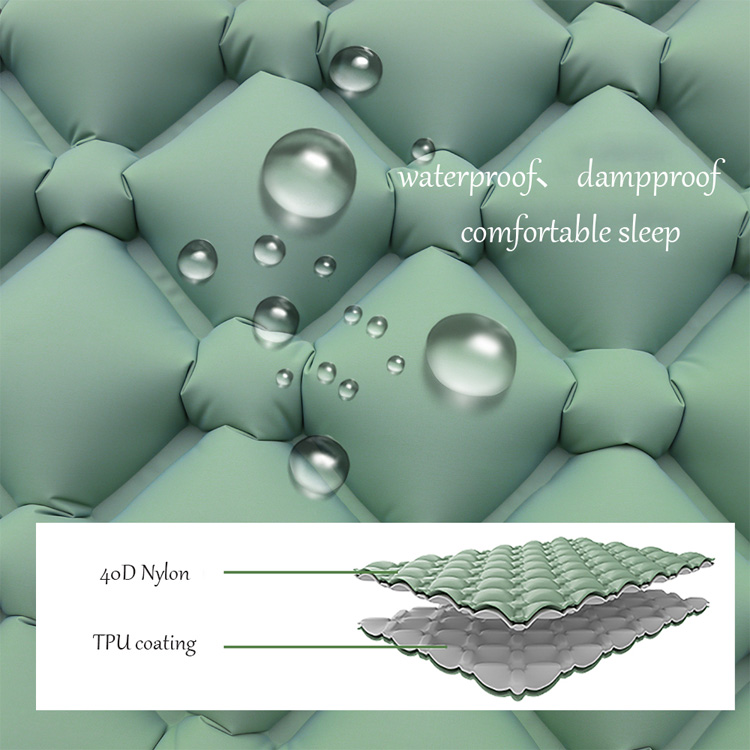 مصنوع من نايلون مقاوم للتمزق 30D مع طبقة من مادة TPU، مما يوفر مقاومة استثنائية للتمزق واحتفاظ موثوق بالهواء طوال الليل في مختلف الظروف الخارجية.