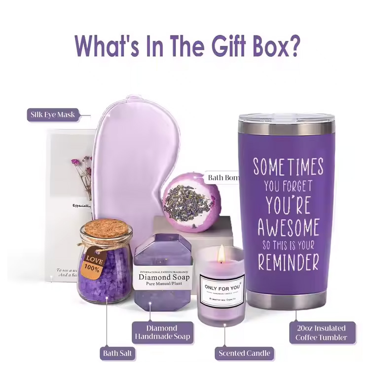 يشتمل كل صندوق هدايا من Lunaire على مجموعة منسقة بشكل جميل من العناصر مثل كوب من الفولاذ المقاوم للصدأ، وشمعة العلاج العطري، والصابون على شكل الماس، والزهور المجففة، وبطاقات التهنئة. توفر لك هذه المجموعة الجاهزة للهدايا الوقت مع تقديم تجربة كاملة وصادقة في أي مناسبة.