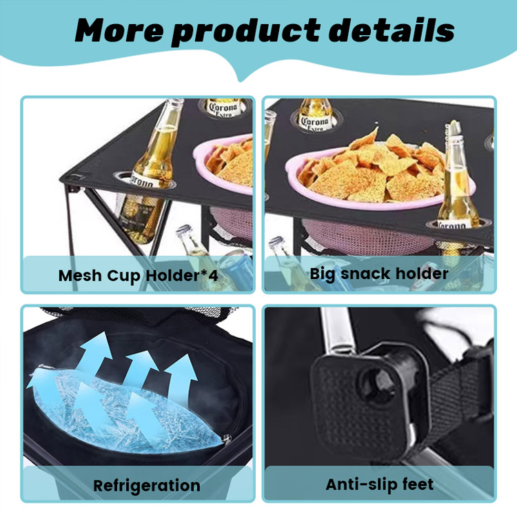 مثالية لحفلات الشواء في الهواء الطلق، ورحلات التخييم، وحفلات الشاطئ، ونزهات الحديقة، وتجمعات الفناء، وإعدادات البار المنزلي، وكطاولة جانبية أنيقة في غرفة المعيشة الخاصة بك.
