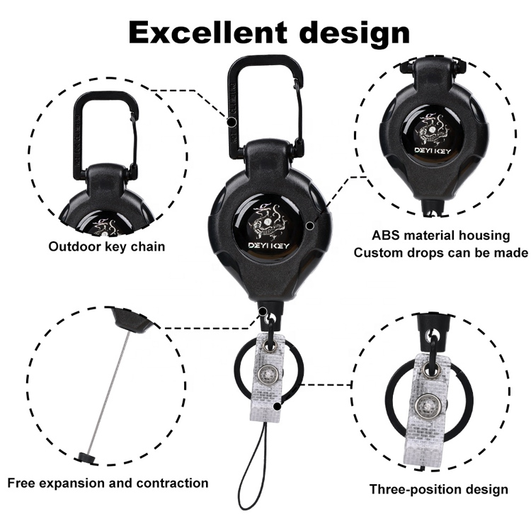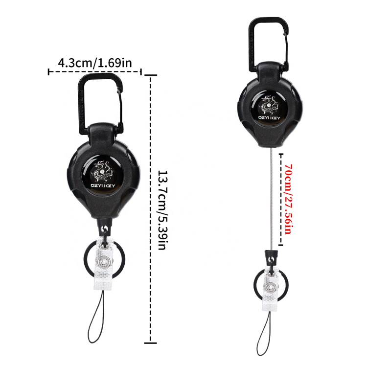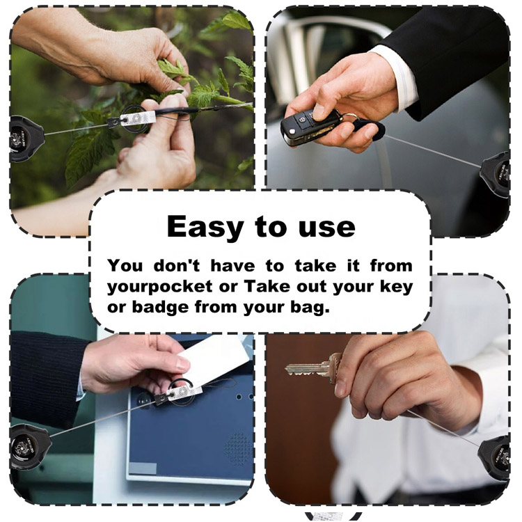 يتميز بحبل نايلون متين بطول 80 سم مع آلية سلسة قابلة للسحب تسمح بتمديد مريح مع منع التشابك، مما يحافظ على مفاتيحك آمنة ويمكن الوصول إليها أثناء الأنشطة الخارجية.