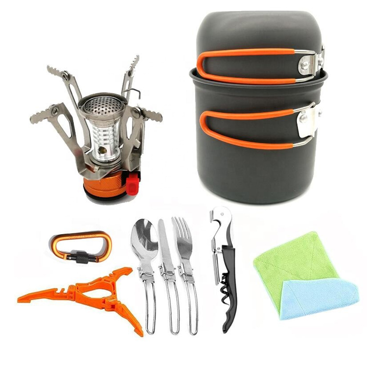 مجموعة تجهيزات المطابخ المحمولة في الهواء الطلق والتخييم والمشي لمسافات طويلة وحقيبة الظهر