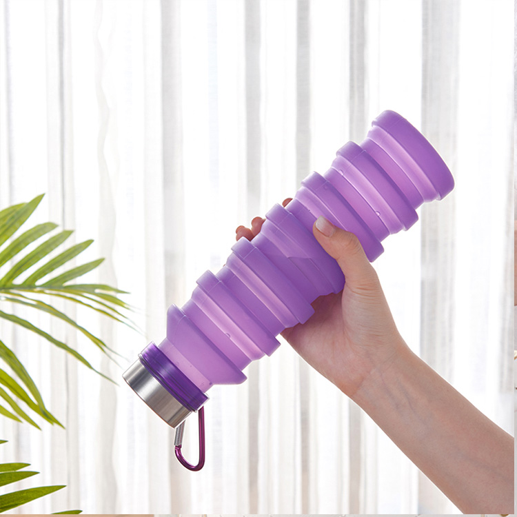 زجاجة مياه قابلة للطي مصنوعة من السيليكون وخالية من مادة BPA وقابلة لإعادة الاستخدام