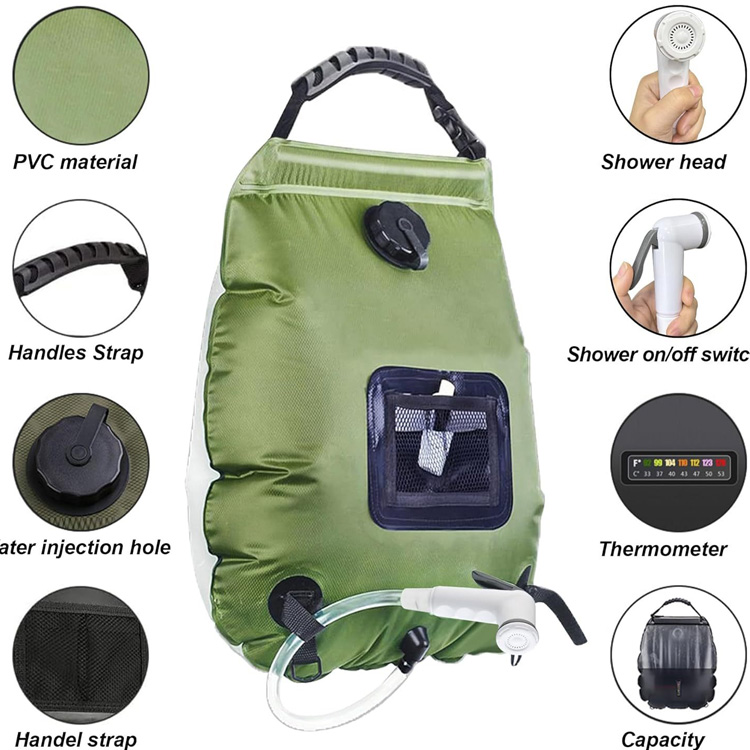حقيبة استحمام محمولة تعمل بالطاقة الشمسية للتخييم والتدفئة والتخييم