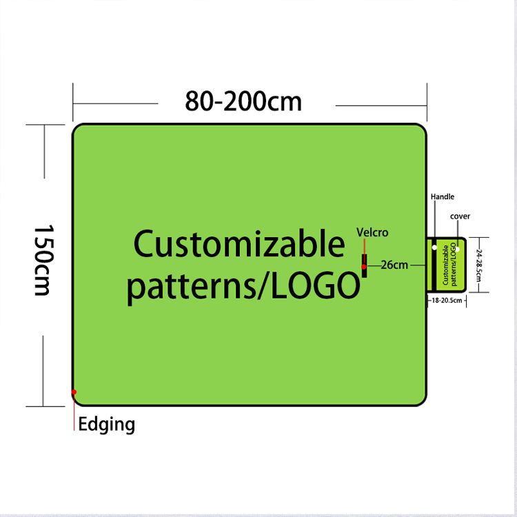 إكسسوارات السفر والتخييم، بطانية النزهة، سجادة النزهة المخصصة. رفيقك المميز في السفر للراحة في الهواء الطلق. تتميز سجادة النزهة القابلة للتخصيص بتصميم كبير وسميك مع حماية فائقة ضد الماء. تم تصميمه بخبرة للتخييم والنزهات، ويمكن طيه بشكل صغير لسهولة الحمل في جميع مغامراتك.