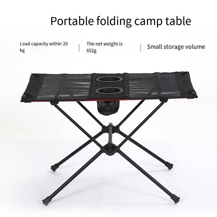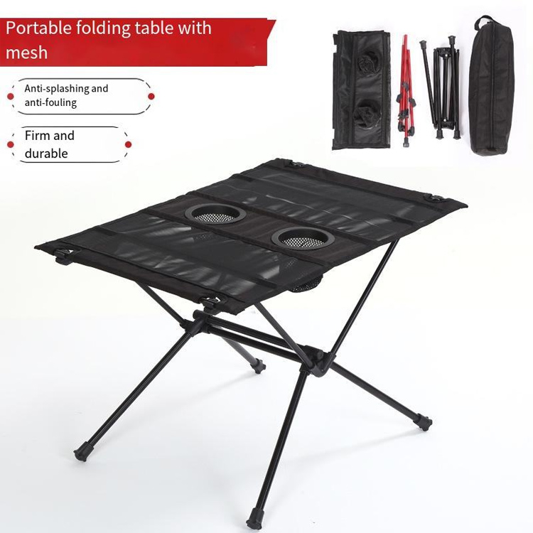 طاولة تخييم خفيفة الوزن من النايلون قابلة للطي شبكية قابلة للتنفس. الحل المثالي لطاولة محمولة للمغامرات الخارجية. تتميز طاولة التخييم خفيفة الوزن هذه ببنية متينة من النايلون مع سطح شبكي مسامي وحامل أكواب متكامل. يضمن التصميم القابل للطي أقصى قدر من سهولة الحمل لجميع أنشطتك الخارجية.