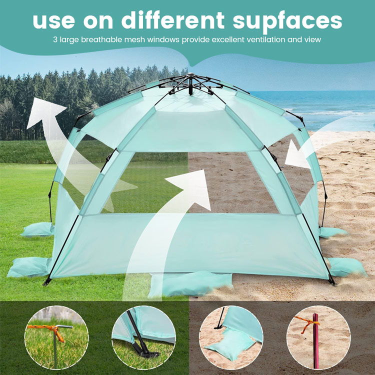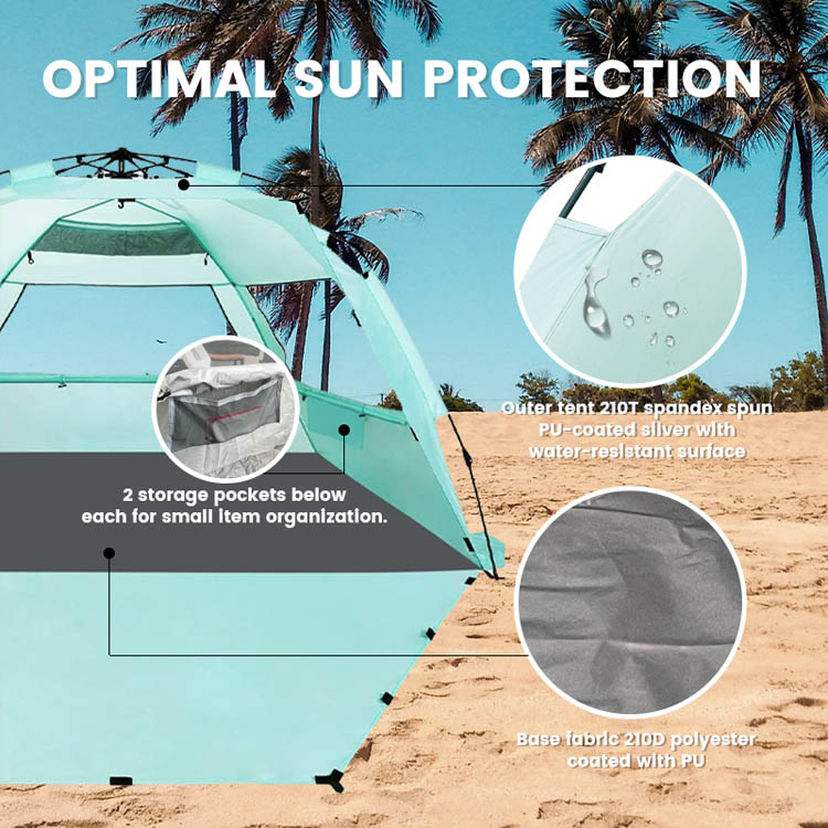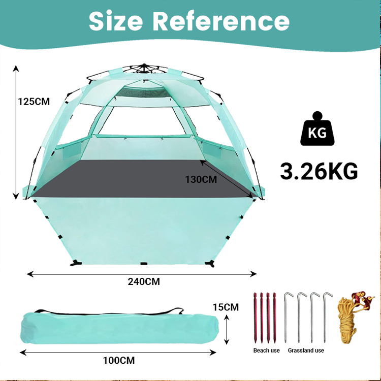 خيمة شاطئ من البوليستر خفيفة الوزن بالجملة. الحل بالجملة الممتاز للحماية من أشعة الشمس على الشاطئ. تتميز خيمة تظليل الشمس المصنوعة من البوليستر الخفيف للغاية بتصميم مريح قابل للطي. مثالي للاستخدام بالجملة في الهواء الطلق على الشاطئ، فهو يجمع بين سهولة النشر وتغطية الظل الموثوقة.