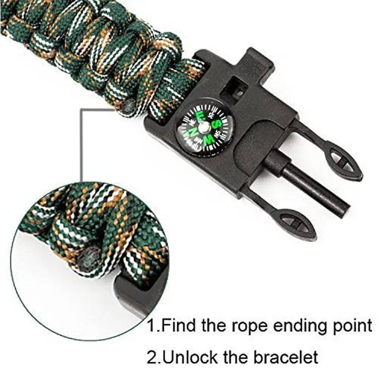 الجملة عينة البقاء على قيد الحياة 550 رطل سوار Paracord التكتيكي. معدات البقاء الأساسية الخاصة بك للمغامرات في الهواء الطلق. يتميز سوار باراكورد التكتيكي هذا بقوة ملحوظة تبلغ 550 رطلاً. مثالي لحالات التخييم والطوارئ، فهو يوفر فائدة عملية وتصميمًا أنيقًا. متاح للبيع بالجملة مع عينات مجانية.